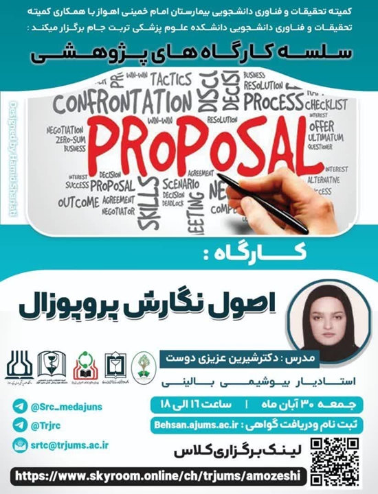 کمیته تحقیقات و فناوری دانشجویی بیمارستان امام خمینی اهواز با همکاری کمیته تحقیقات و فناوری دانشگاه علوم پزشکی تربت جام برگزار می‌کند: