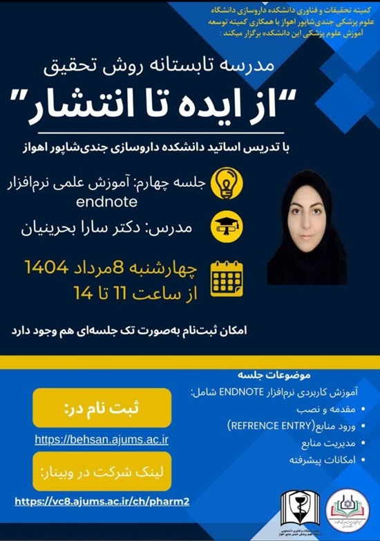 ���� کمیته تحقیقات و فناوری دانشجویی دانشکده داروسازی جندی‌شاپور اهواز با همکاری ���� کمیته توسعه آموزش دانشکده داروسازی جندی‌شاپور اهواز برگزار می‌کنند: