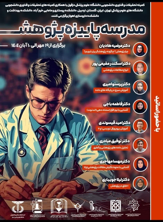⭕️کمیته تحقیقات و فناوری دانشجویی دانشگاه علوم پزشکی دزفول با همکاری کمیته های تحقیقات و فناوری دانشجویی دانشگاه های علوم پزشکی تهران، ایران، گلستان، اردبیل، دانشکده بهداشت و داروسازی اهواز و دانشکده پرستاری و مامایی خرم آباد برگزار می کند: