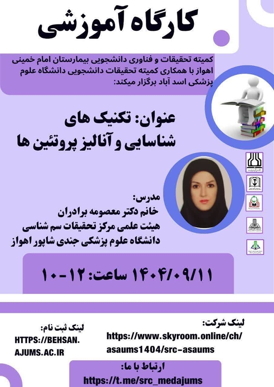 کمیته تحقیقات و فناوری دانشجویی بیمارستان امام خمینی (ره) اهواز با همکاری  کمیته تحقیقات و فناوری دانشجویی دانشکده علوم پزشکی اسدآباد برگزار میکنند: