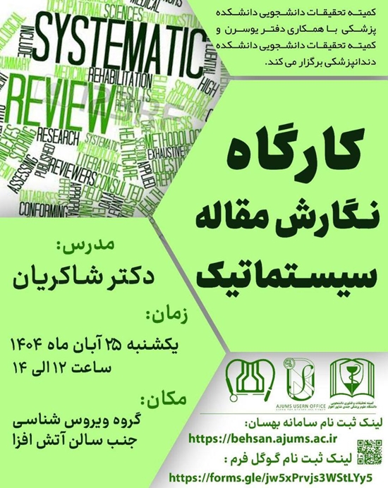 ⭕️ کمیته تحقیقات دانشجویی دانشکده پزشکی با همکاری دفتر یوسرن و کمیته تحقیقات دانشجویی دانشکده دندانپزشکی دانشگاه علوم پزشکی جندی شاپور اهواز برگزار میکند : ⭕️