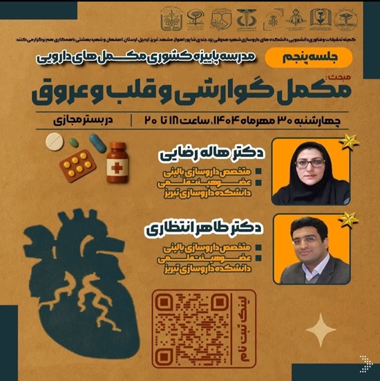 در این وبینار، قراره درباره‌ی ترکیبات مؤثر، تداخلات دارویی و نکات طلایی در مصرف ایمن مکمل‌ها صحبت بشه،یه بحث علمی، جذاب و کاملاً کاربردی برای همه‌ی علاقه‌مندان به داروسازی، پزشکی و تغذیه ��������