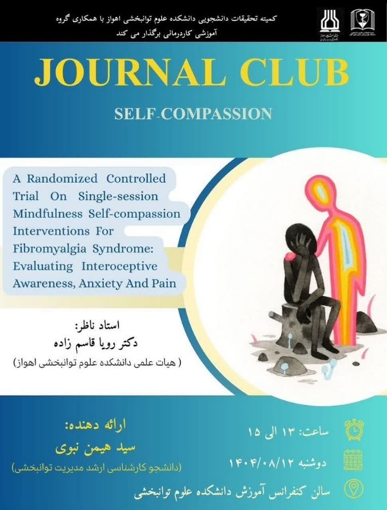 ژورنال کلاب دانشجویی عنوان مقاله: A Randomized Controlled Trial On Single-session Mindfulness Self-compassion Interventions For Fibromyalgia Syndrome: Evaluating Interoceptive Awareness, Anxiety And Pain