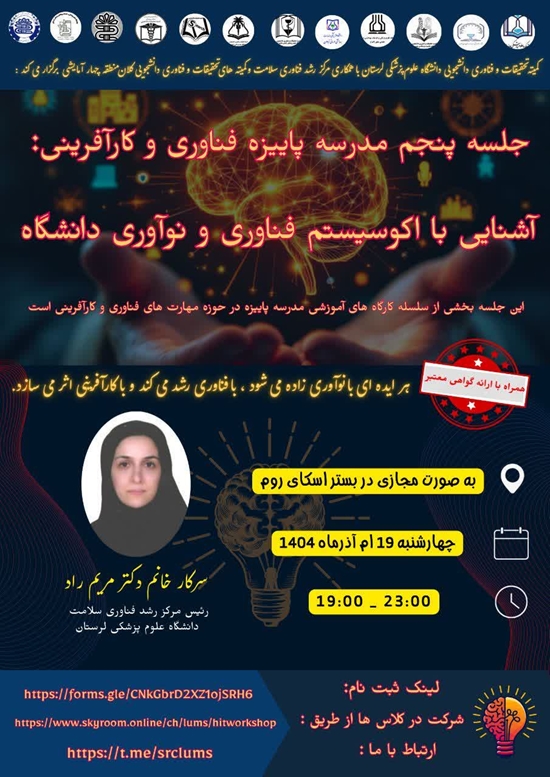 مدرس جلسه: سرکار خانم دکتر مریم مراد رئیس مرکز رشد فناوری سلامت دانشگاه علوم پزشکی لرستان