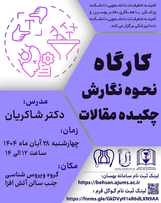 • چکیده نویسی و نحوه ارسال به کنگره۲۰ شهریور، ساعت ۹ تا ۱۲