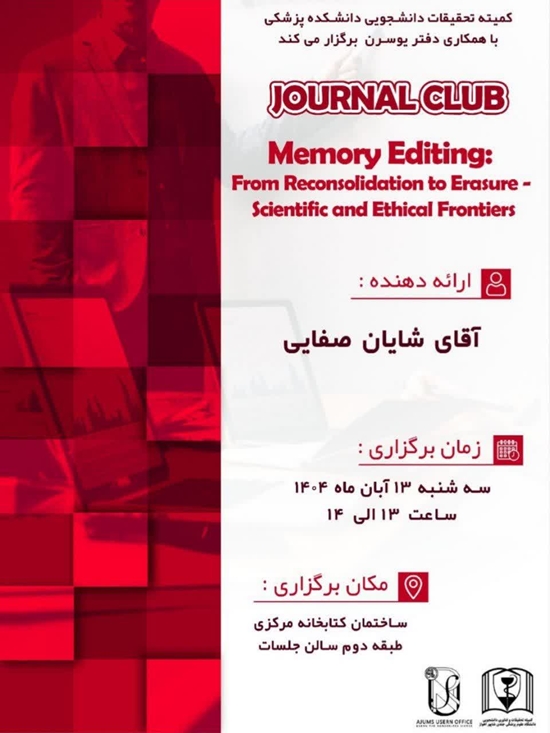 ژورنال کلاب با عنوان  Memory Editing: From Reconsolidation to Erasure — Scientific and Ethical Frontier